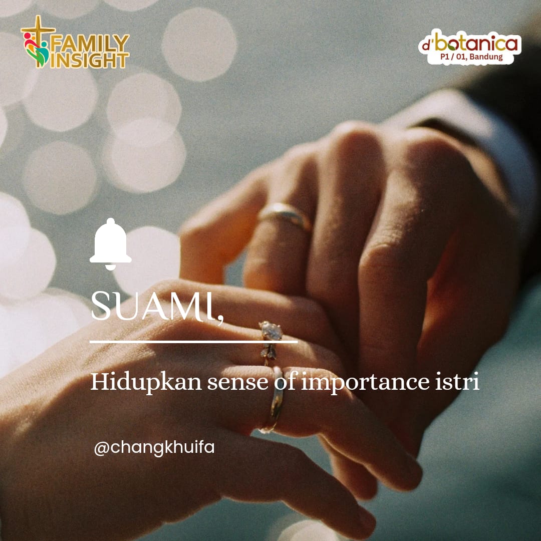 d. Suami menyediakan waktu ‘spesial’ bagi isteri. Suami yang terlalu sibuk, istri bisa jadi uring-uringan. Istri berpikir,” Dulu setiap minggu, selalu setidaknya satu kali ada waktu berdua; tapi sekarang sibuk terus. Satu minggu lewat, dua minggu lewat, eh… tiga minggu lewat kok sibuk ga abis-abis… tidak pernah pergi berdua-an?” Akhirnya, hal-hal sepele bisa jadi besar. Kenapa? Karena sense of importance-nya mulai dilalaikan.